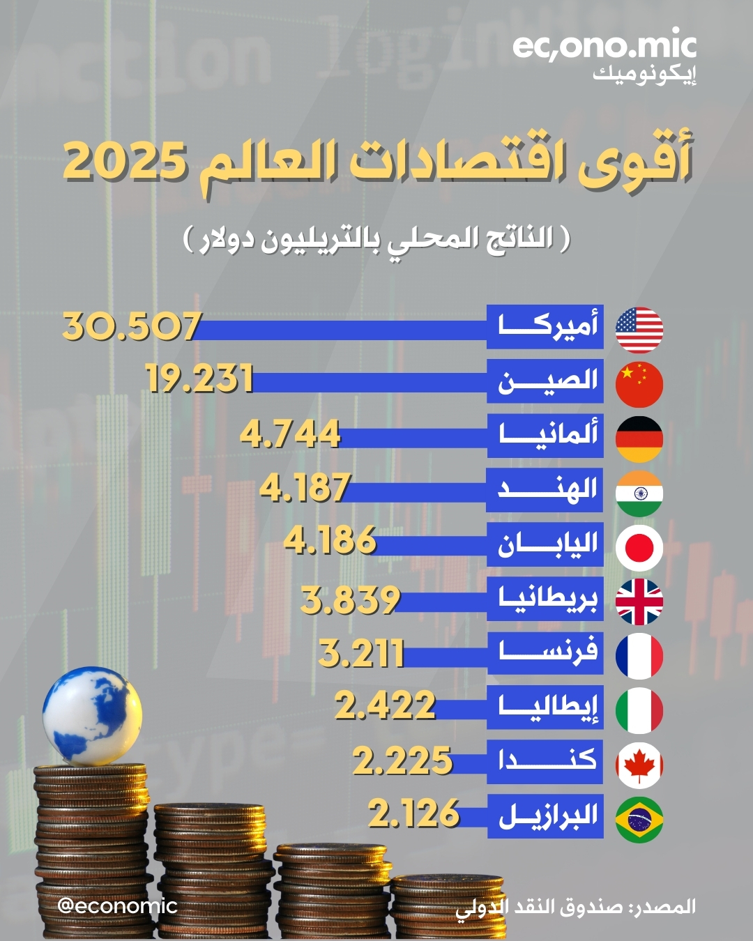 تعرف على قائمة أقوى اقتصادات العالم لعام 2025 وفق تقديرات صندوق النقد الدولي التي تكشف الدول المتصدرة بحجم ناتجها المحلي الإجمالي الاسمي