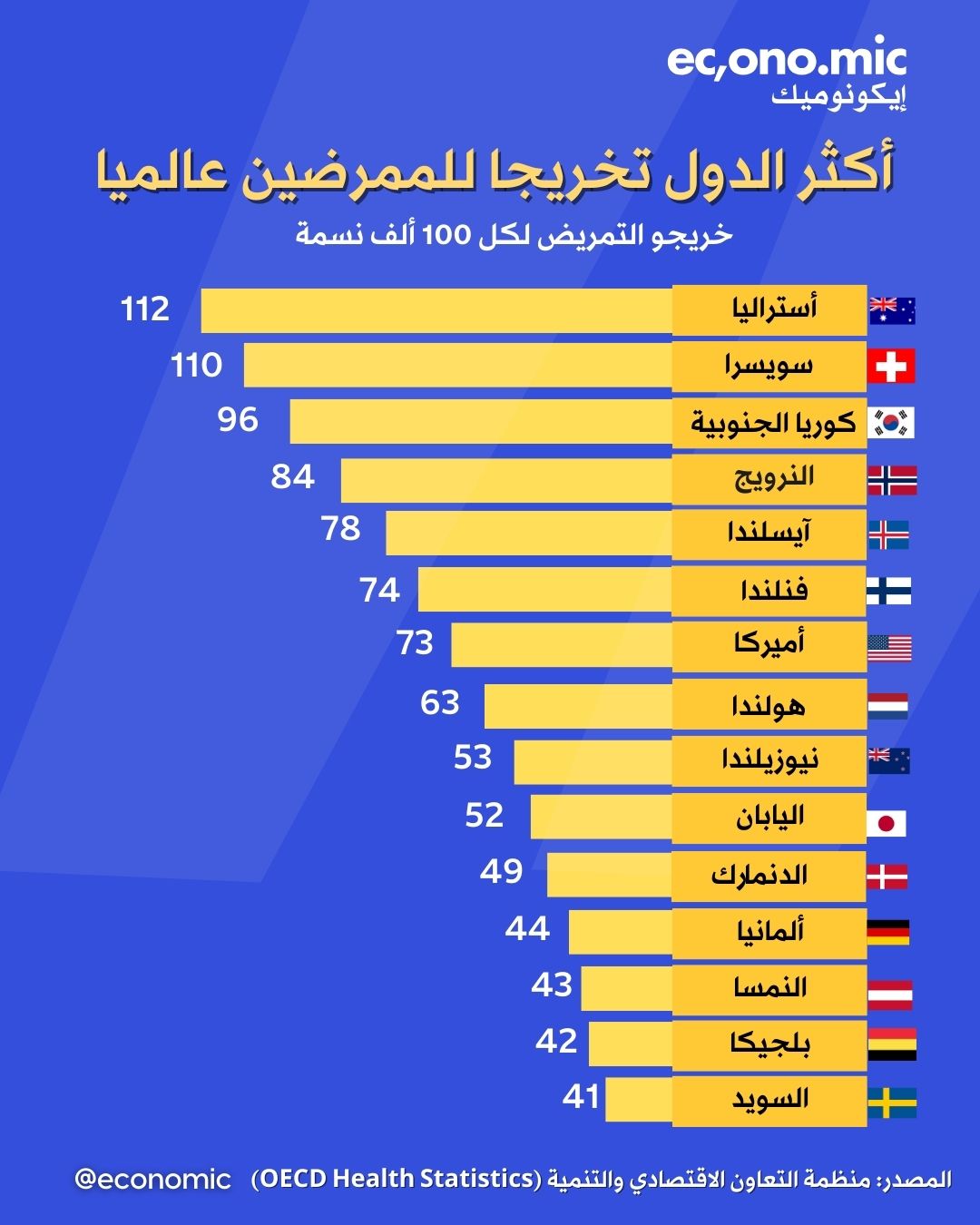 أستراليا وسويسرا تتصدران العالم في عدد خريجي التمريض لكل 100 ألف نسمة