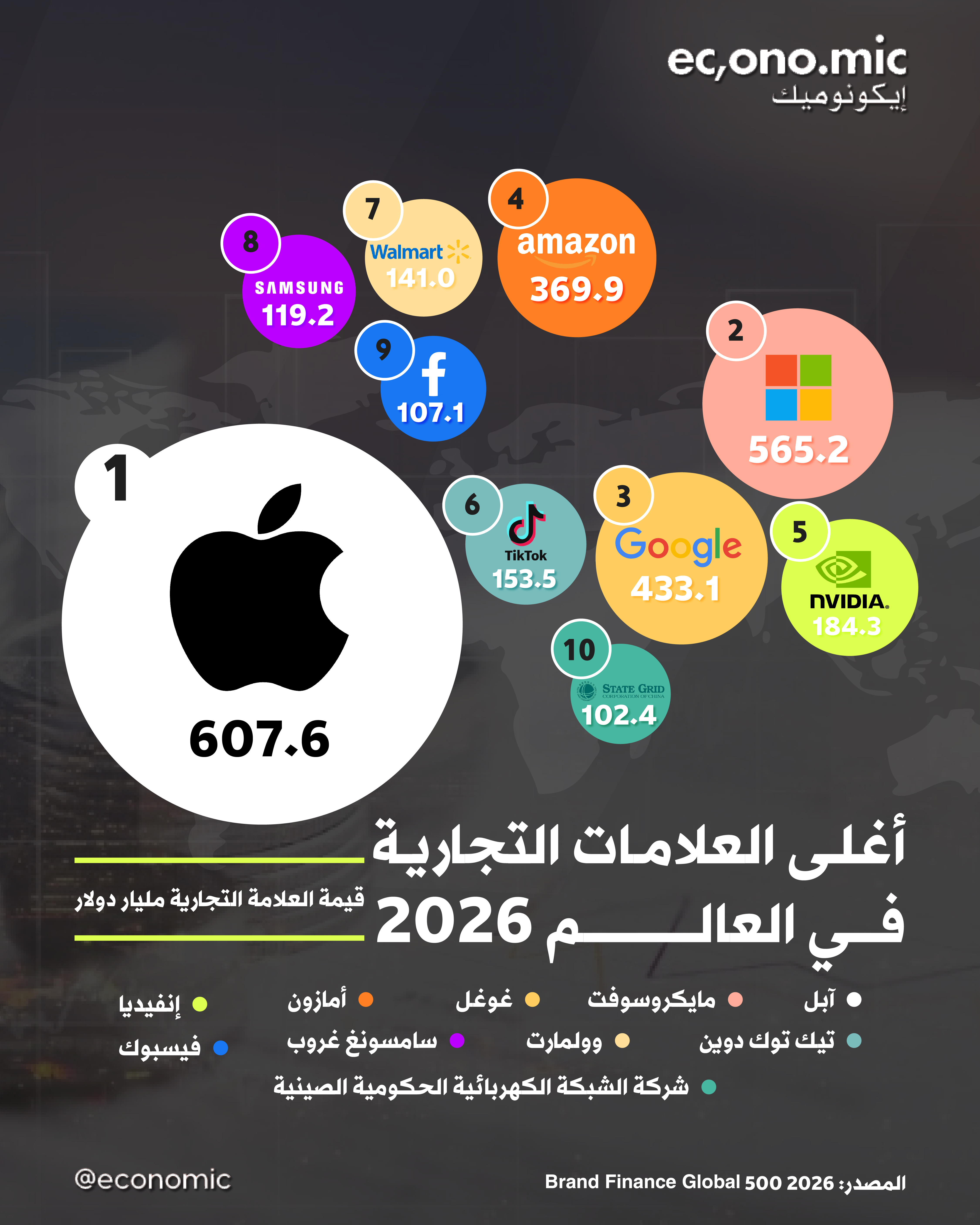 صدر اليوم تصنيف Brand Finance Global 500 لعام 2026 الذي يرصد أغلى العلامات التجارية في العالم بناء على القيمة المالية للعلامة وليس القيمة السوقية للشركة