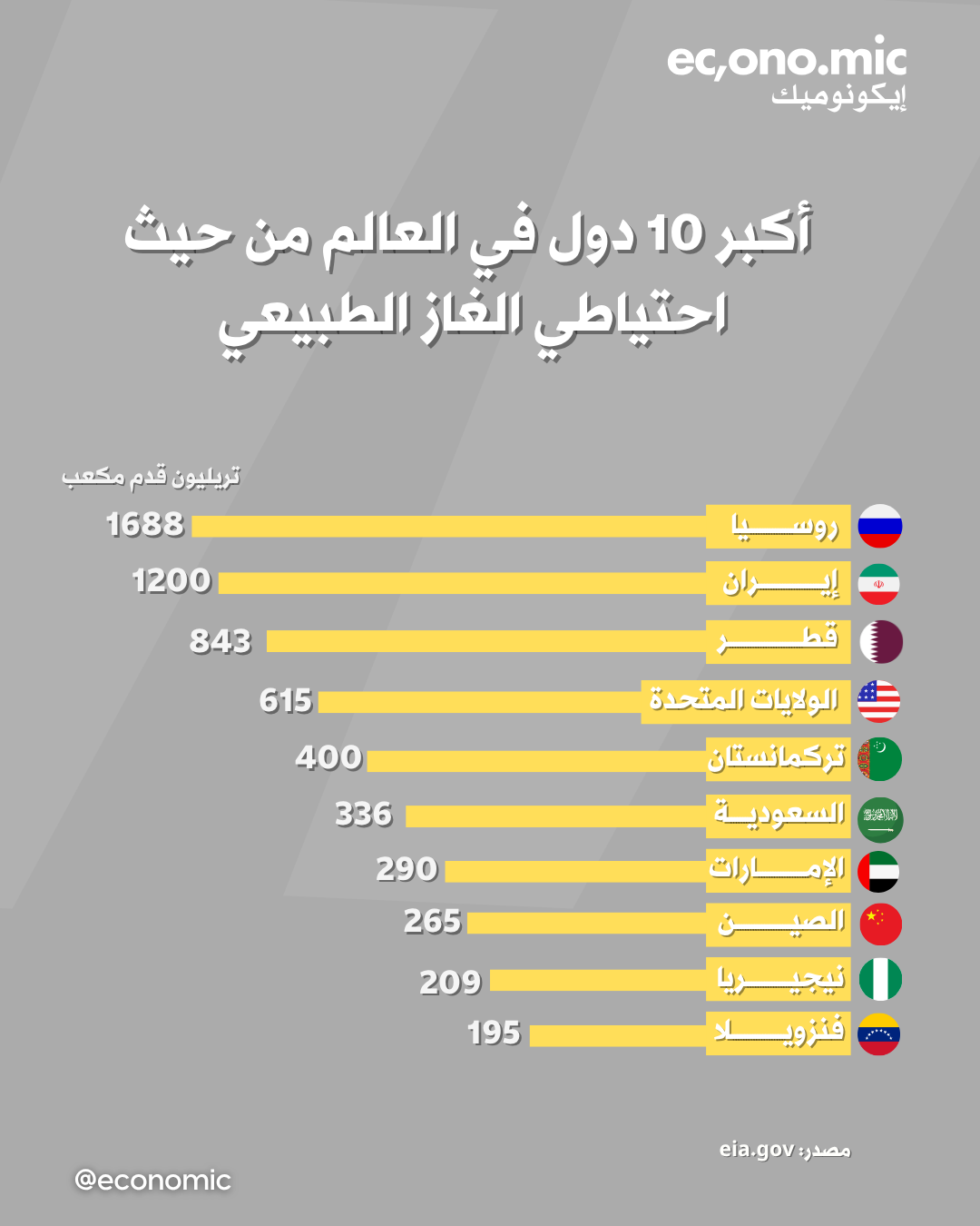 من روسيا بـ1688 تريليون قدم³ إلى فنزويلا بـ195 فقط