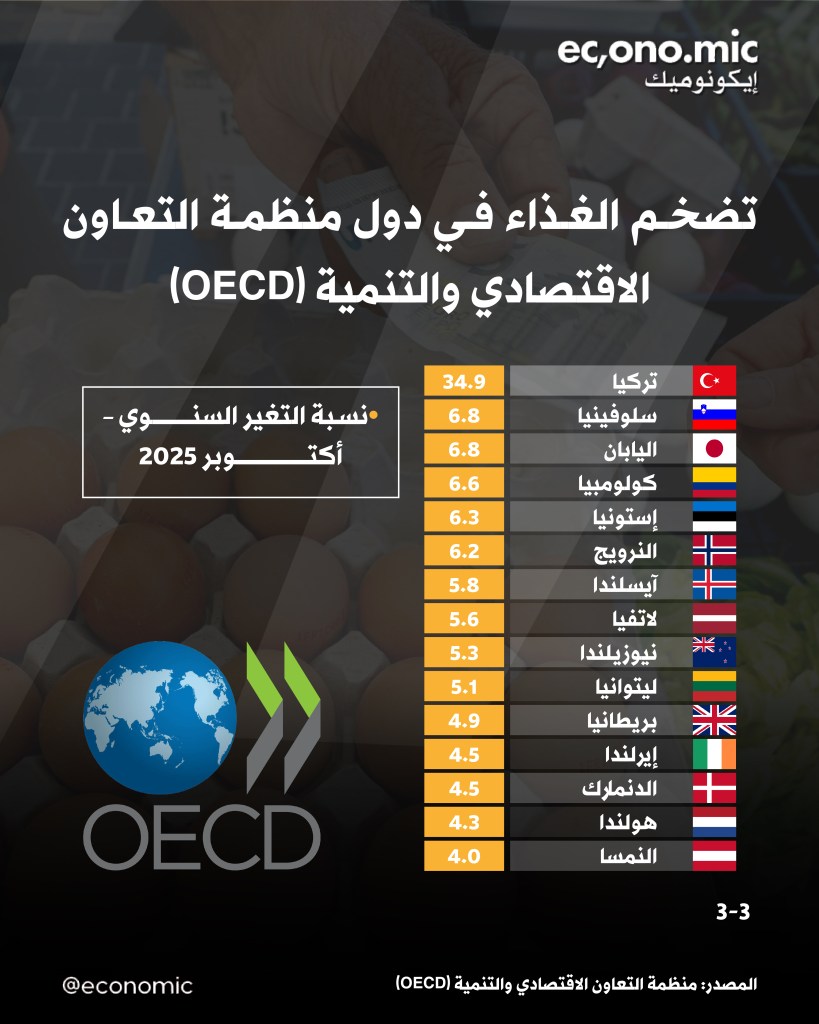 تباطأ تضخم الغذاء في أكثر من نصف دول منظمة التعاون الاقتصادي والتنمية خلال أكتوبر 2025.