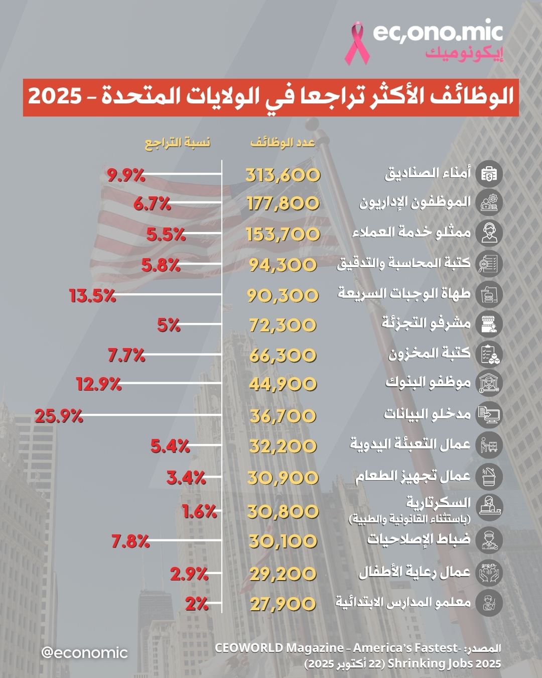 أكثر من 300 ألف وظيفة أمين صندوق مهددة بالاختفاء، ومهن تقليدية مثل إدخال البيانات وخدمة العملاء تتراجع أمام موجة الأتمتة والذكاء الاصطناعي