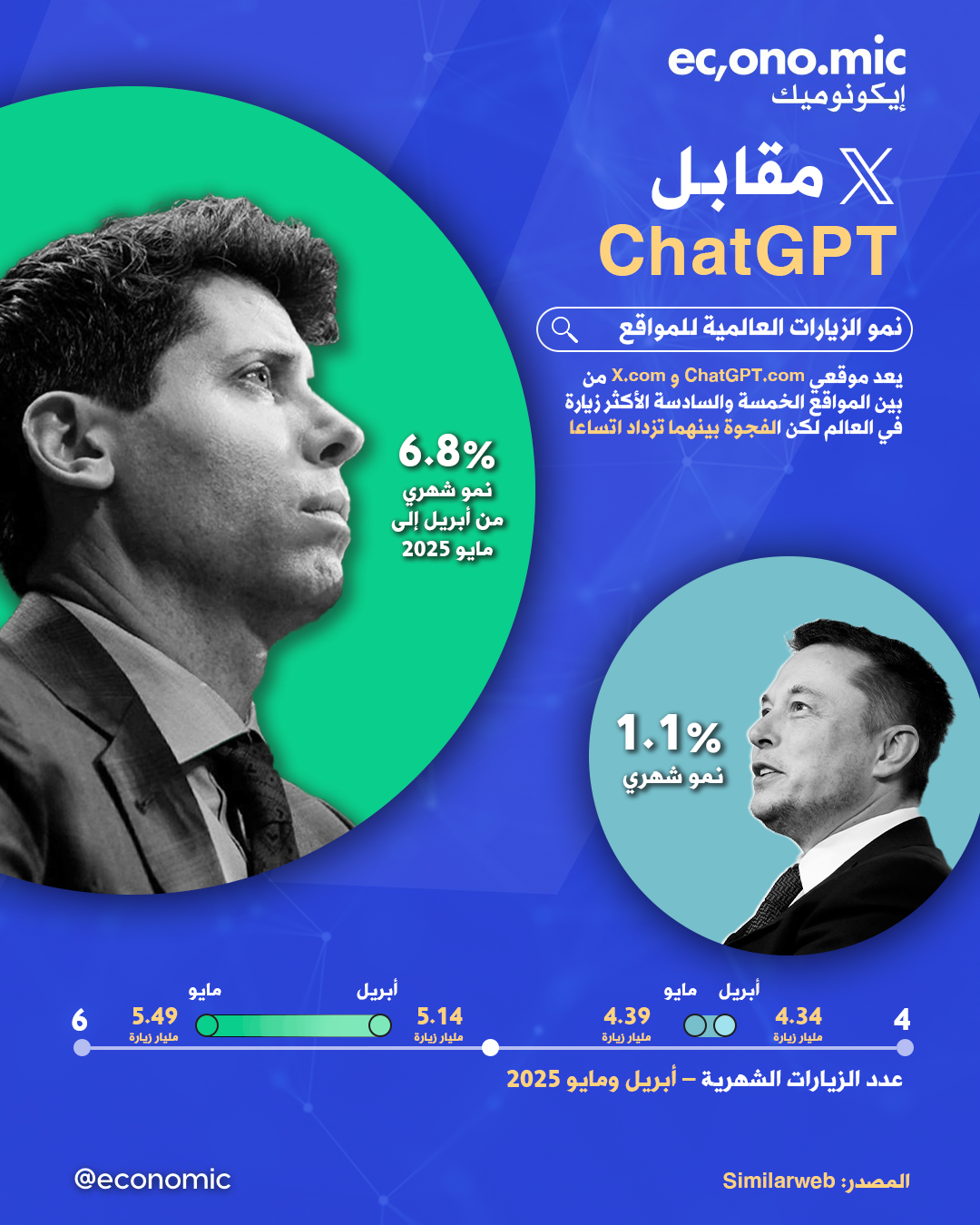 ChatGPT يسجّل نموا شهريا بـ6.8% مقابل 1.1% فقط لـX.com في مايو 2025