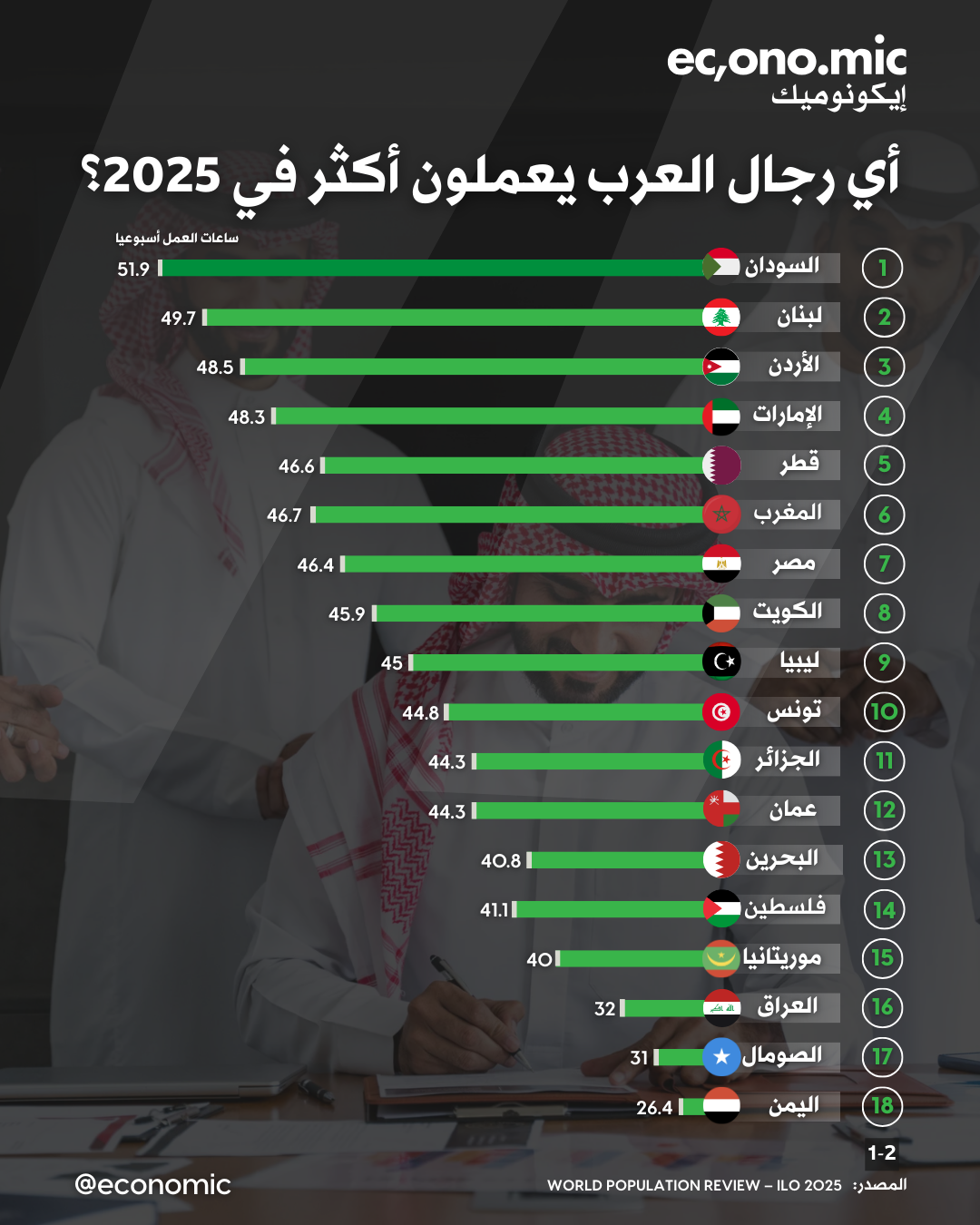 تقرير ILO عبر World Population Review يكشف ترتيب الدول العربية في متوسط ساعات العمل الأسبوعية لعام 2025، والنتايج مثيرة: